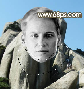 2、打开人物素材,用钢笔把人物头部抠出来,拖到新建的组里面,适当调整好大小及位置,效果如图3。