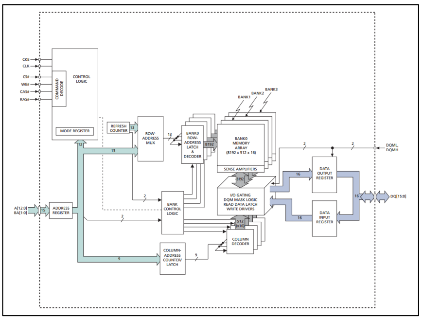 SDRAM 内部功能框图如下: