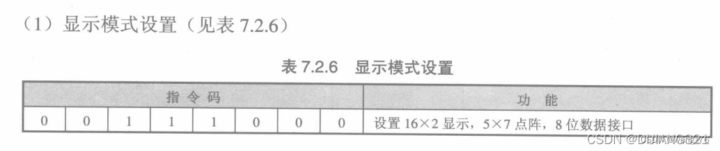 /* 准备D0~D7 数据,设置16*2显示,5*7点阵,8位数据接口。