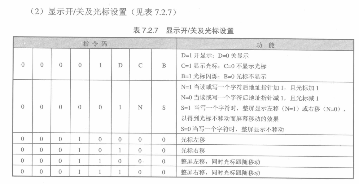 /*准备D0~D7 数据,设置开显示,不显示光标。码表见上图*/