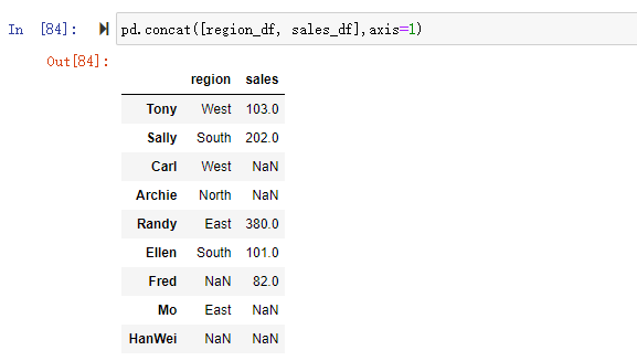 默认纵向拼接(根据列名匹配后,往下拼接排列)
