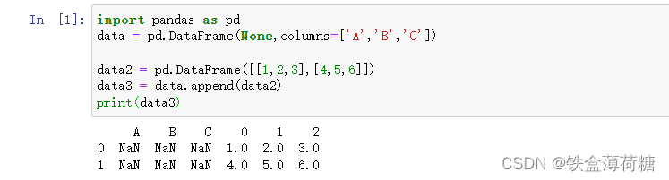 其次,我们创建另一个DataFrame对象,并利用append 将其数据添加到空DataFrame中.