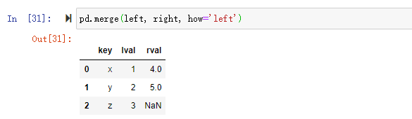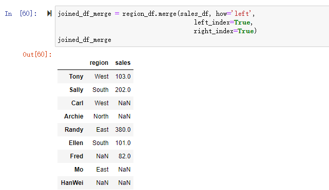 left_index:使用左侧DataFrame中的行索引作为连接键;