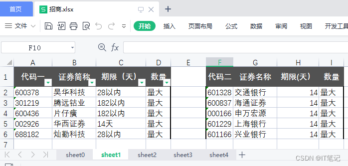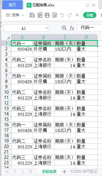 以上就是大方红牛最近收集整理的关于【Python】pandas合并Excel和匹配查找并输出匹配结果一:目标匹配股票公司.xlsx,一个sheet,一张表二:招商.xlsx sheet0,有额外的无效列sheet3 三张表,两表中间间隔不同,表从头开始sheet4 三张表, 表的位置不是从头开始三: 中金.xlsx 四:汇总表.xlsx,合并效果如下五:匹配结果.xlsx,匹配结果如下:六:代码如下的全部内容,更多相关【Python】pandas合并Excel和匹配查找并输出匹配结果一:目标匹配股票公司.xlsx,一个sheet,一张表二:招商.xlsx内容请搜索靠谱客的其他文章。