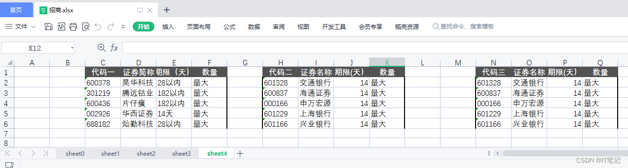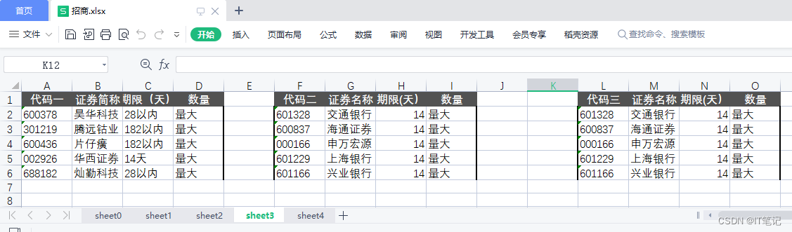 二:招商.xlsx sheet0,有额外的无效列