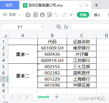 一:目标匹配股票公司.xlsx,一个sheet,一张表