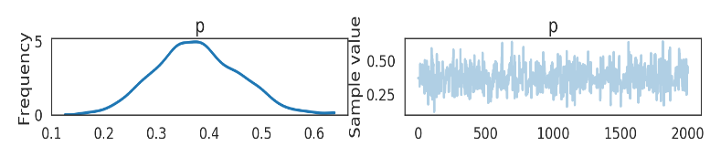 - 对参数预先的假设分布: p∼Uniform(0,1)