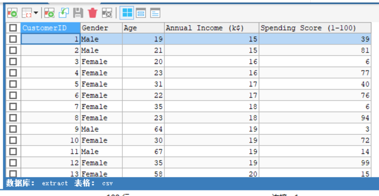 1.抽取CSV文件csv_extract.csv中的数据保存至数据库extract中的数据表csv中。