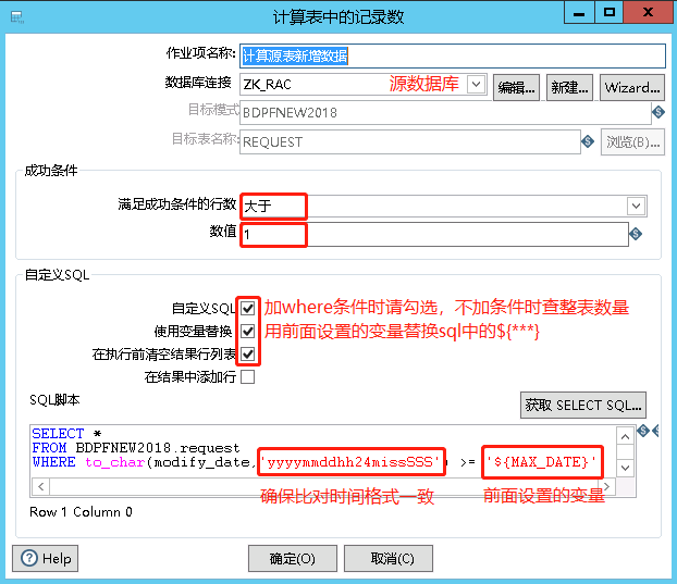 数据量大于1时返回true,否则返回false。true时进行下一步,false时不进行增量抽取。