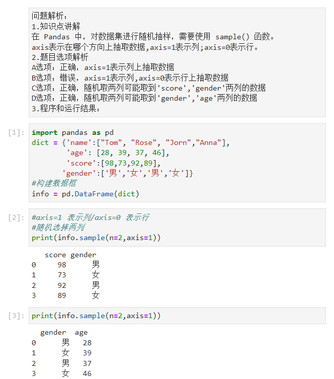 A选项:输出结果为随机两列的数据