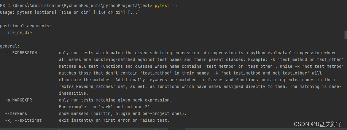 pytest -h ---> 查看命令