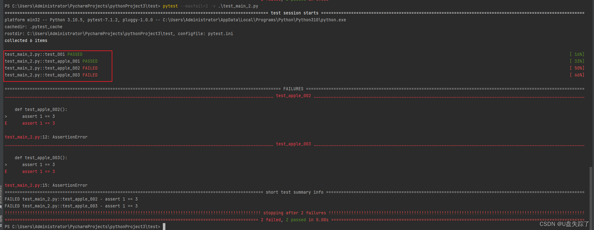 --maxfail=x ---> pytest --maxfail=2 -v .test_main_2.py