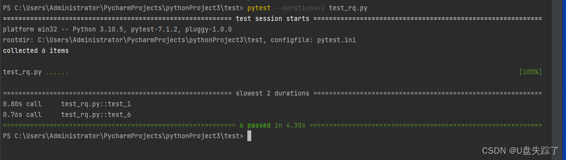 找出耗时最久的前五个case ---> pytest -s --durations=2 -v test_rq.py
