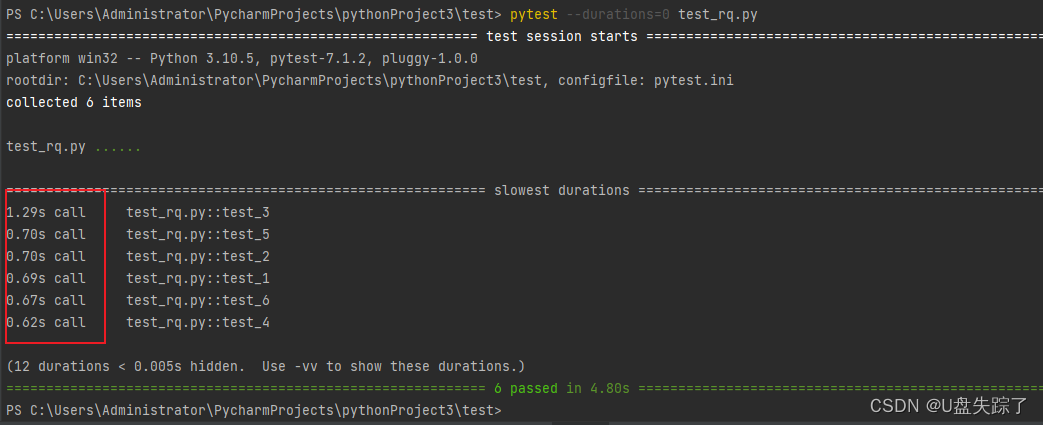 --durations ---> pytest --durations=0 test_rq.py