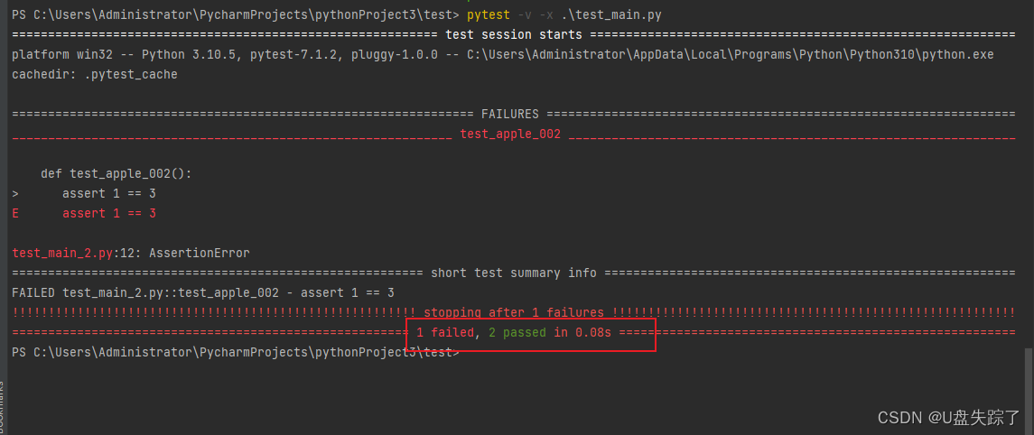 -x: ---> pytest -v -x .test_main.py