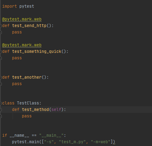 pytest -v -m web/直接在编辑器使用["-s", "test_server.py", "-m=web]