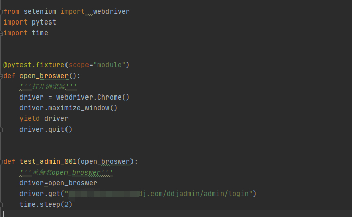open_broswer这个fixture返回打开浏览器的实例的driver,后面的测试用例传open_broswer参数,此时open_broswer就相当于driver了,这个时候就可以将open_broswer重命名name,改成driver,这样就更之前的一样了