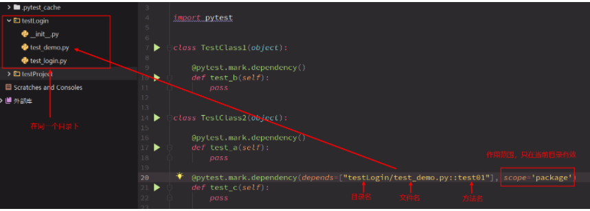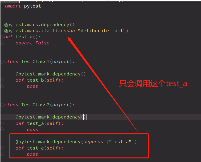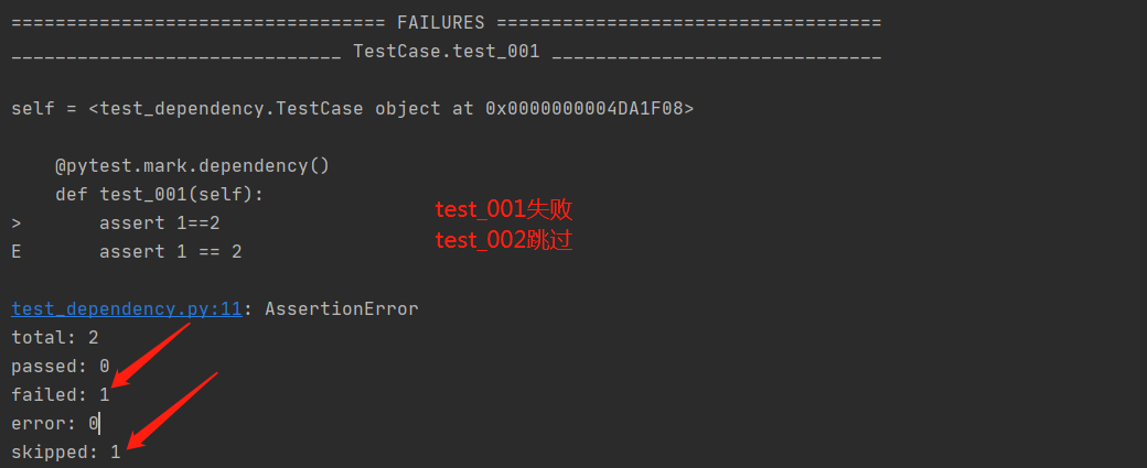 该插件是pytest的第三方,主要解决的是的用例之间的依赖关系。如果依赖的上下文失败,后面的用例会被标识跳过该执行,相当于执行了pytest.mark.skip