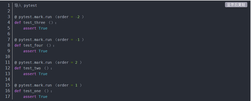 pytest默认是按照字母来执行执行顺序,由于多接口之间存在值引用的关系,此时就需要执行case的执行顺序。pytest控制case执行顺序的插件是pytest-ordering,直接用pip安装。