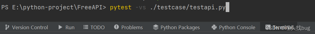 运行testcase文件夹下的testapi.py文件。输入更加详细的运行信息(-v)和调试信息(-s)