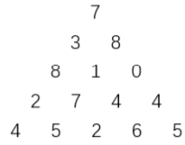 上图给出了一个数字三角形。从三角形的顶部到底部有很多条不同的路径。对于每条路径,把路径上面的数加起来可以得到一个和,你的任务就是找到最大的和。