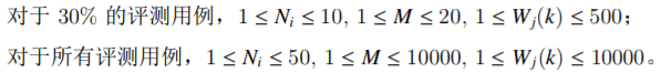 第 8 至 M + 7 行,每行描述一种装饰珠 (技能) 的情况。每行的前两个整数 Lj(1 ≤ Lj ≤ 4) 和 Pj(1 ≤ Pi ≤ 7) 分别表示第 j 种装饰珠的等级和上限。接下来 Pj 个整数,其中第 k 个数表示装备该中装饰珠数量为 k 时的价值 Wj(k)。