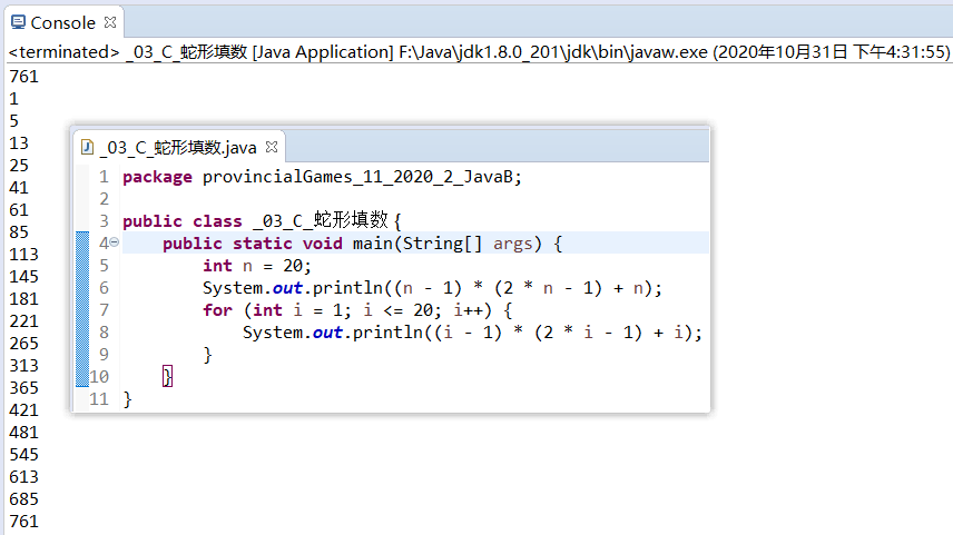 三、试题 C: 蛇形填数——答案:761