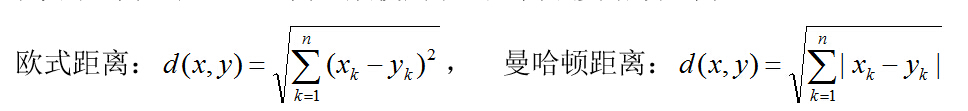 在KNN中,通过计算对象间距离来作为各个对象之间的非相似性指标,避免了对象之间的匹配问题,在这里距离一般使用欧氏距离或曼哈顿距离。