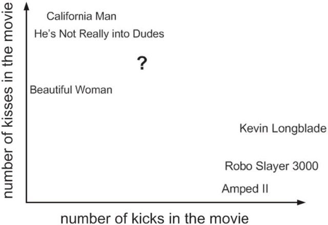 即使不知道未知电影属于哪种类型,我们也可以通过某种方法计算出来,如下图: