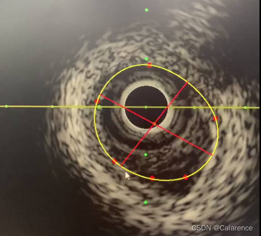 对图像的感兴趣区域进行描绘出封闭曲线,并获得其面积、长轴短轴的长度信息,同时支持新增封闭曲线上点,对点进行拖动,可扩大曲线和缩小曲线,且在拖动点的过程中,拖动点在某点的靠近远端或者近端,则被靠点会被淹没,如果靠近某点,则对拖动点进行切换。