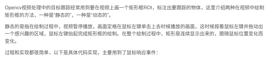 以上就是慈祥含羞草最近收集整理的关于【待测】OpenCV 在视频中绘制矩形框ROI:使用静态、动态方式的全部内容,更多相关【待测】OpenCV内容请搜索靠谱客的其他文章。