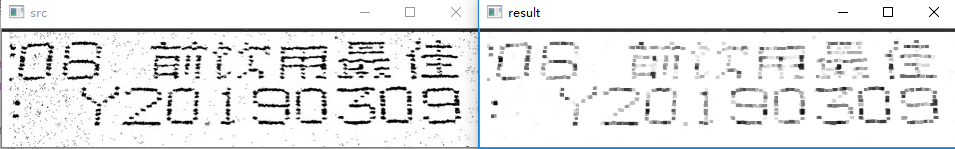| 开运算 | 先腐蚀再膨胀 | 可在纤细点出分离物体。有助于消除噪音 |