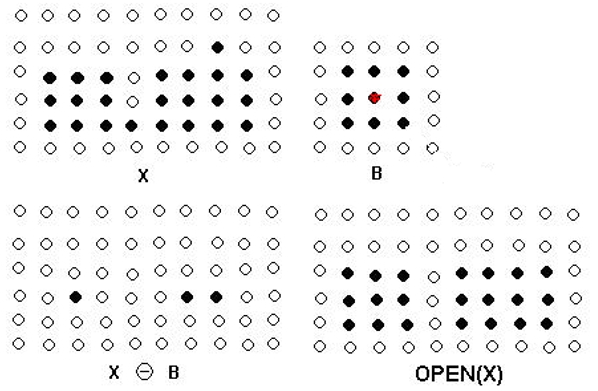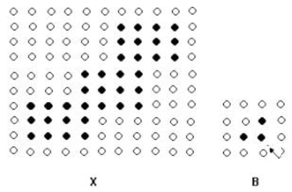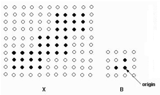 如下图所示,X表示原始图像,B表示结构元素,B对X 腐蚀的示意图如下: