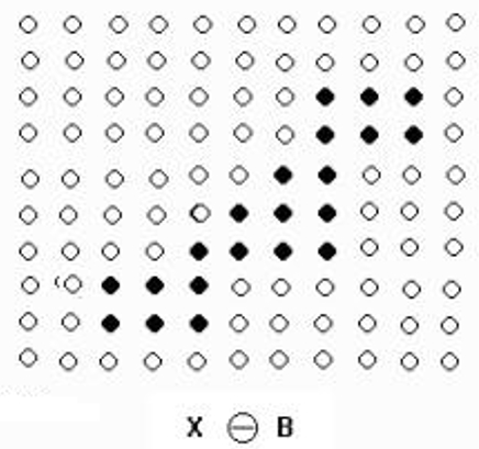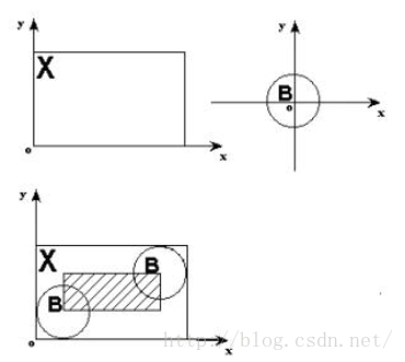 如下图所示,X表示原始图像,B表示结构元素,B对X 膨胀的示意图如下: