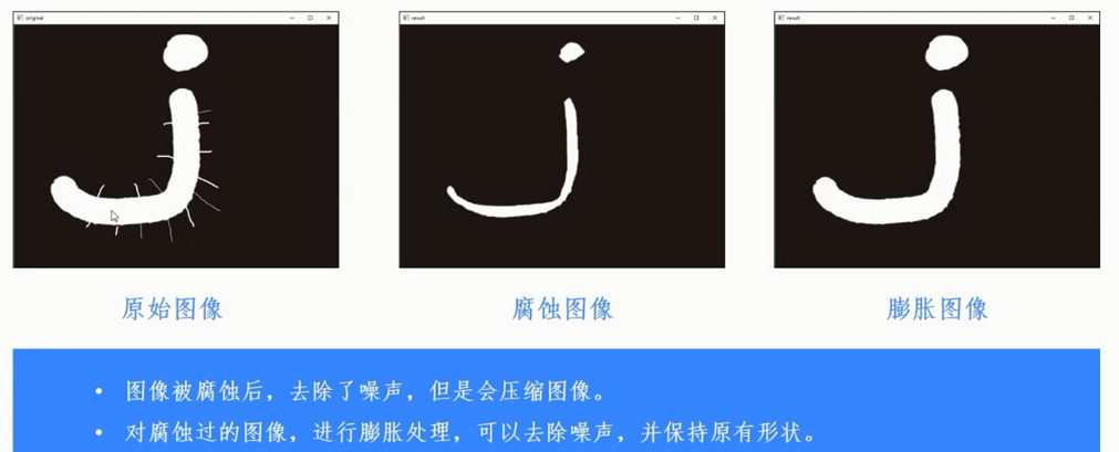 一个图像先进行腐蚀,再进行膨胀。 这种操作,最后得到的图像就是对原始图像的去燥处理。并保持原有图像的形状不变。