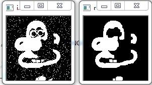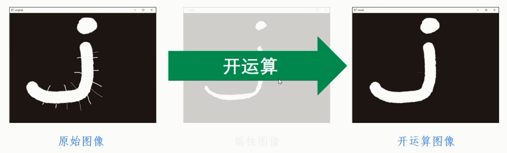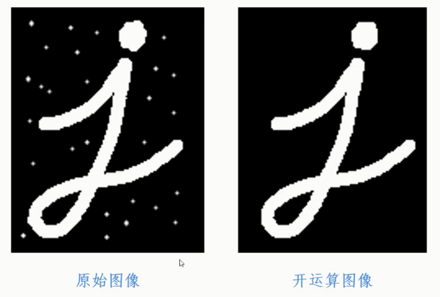 result = cv2.morphologyEx(img, cv2.MORPH_OPEN, kernel) //img, 源图像 //开运算 //卷积核