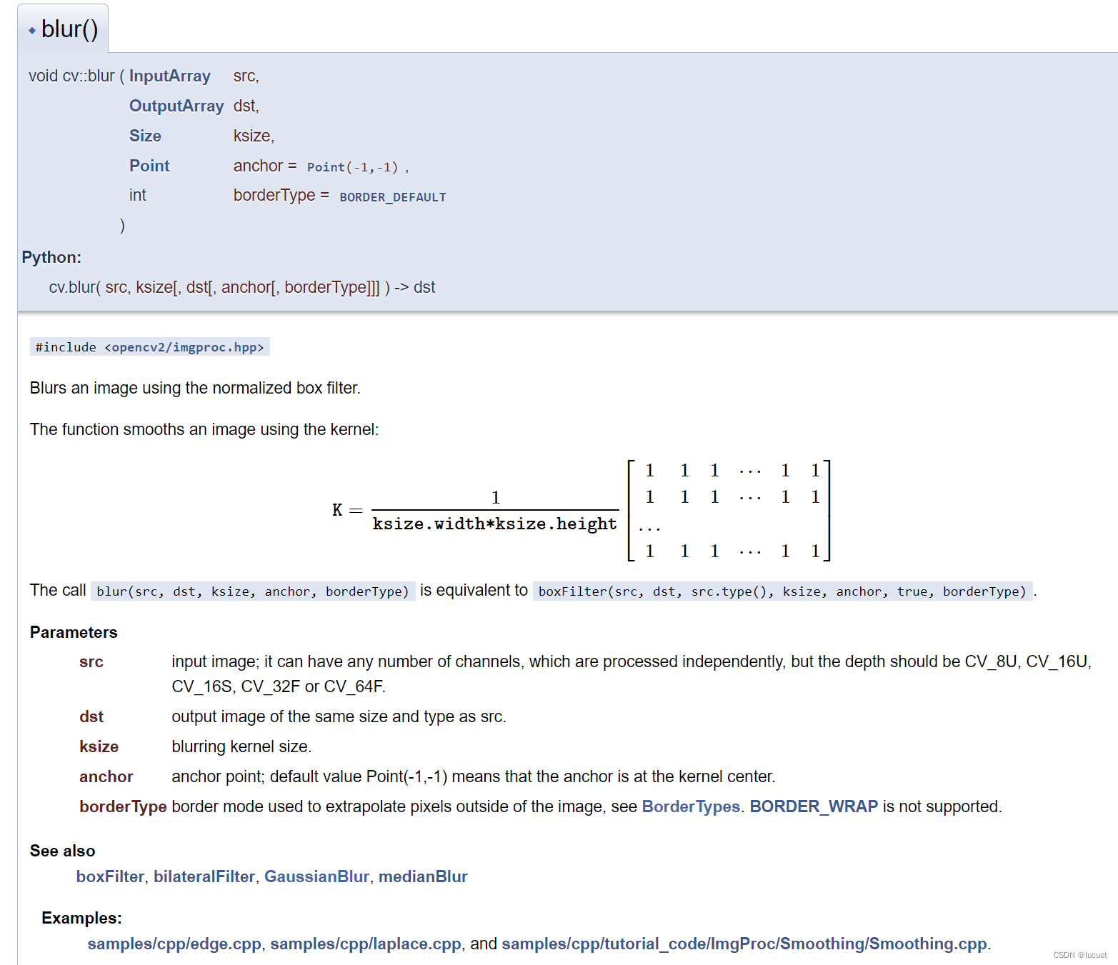anchor——锚点,卷积核对应输出图像上像素点,默认Point(-1,-1)为卷积核中心