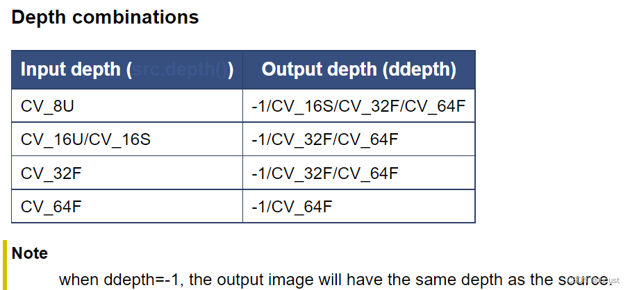 ddepth——所需输出图像的深度,参考如下: