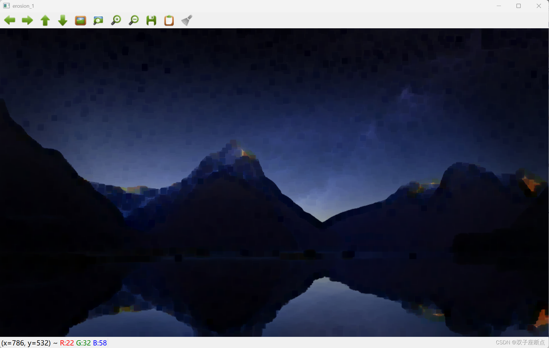 通过上面的例子发现,经过3x3的kernel之后,最终只保留了中心的255像素,周边的255都变成了0。在进行腐蚀操作的时候,就是通过kernel大小的卷积在原图像上滑动,只有当kernel范围内的像素全为255时输出才为255,否则输出为0,所以kernel越大最终白色像素保留的会越少。
