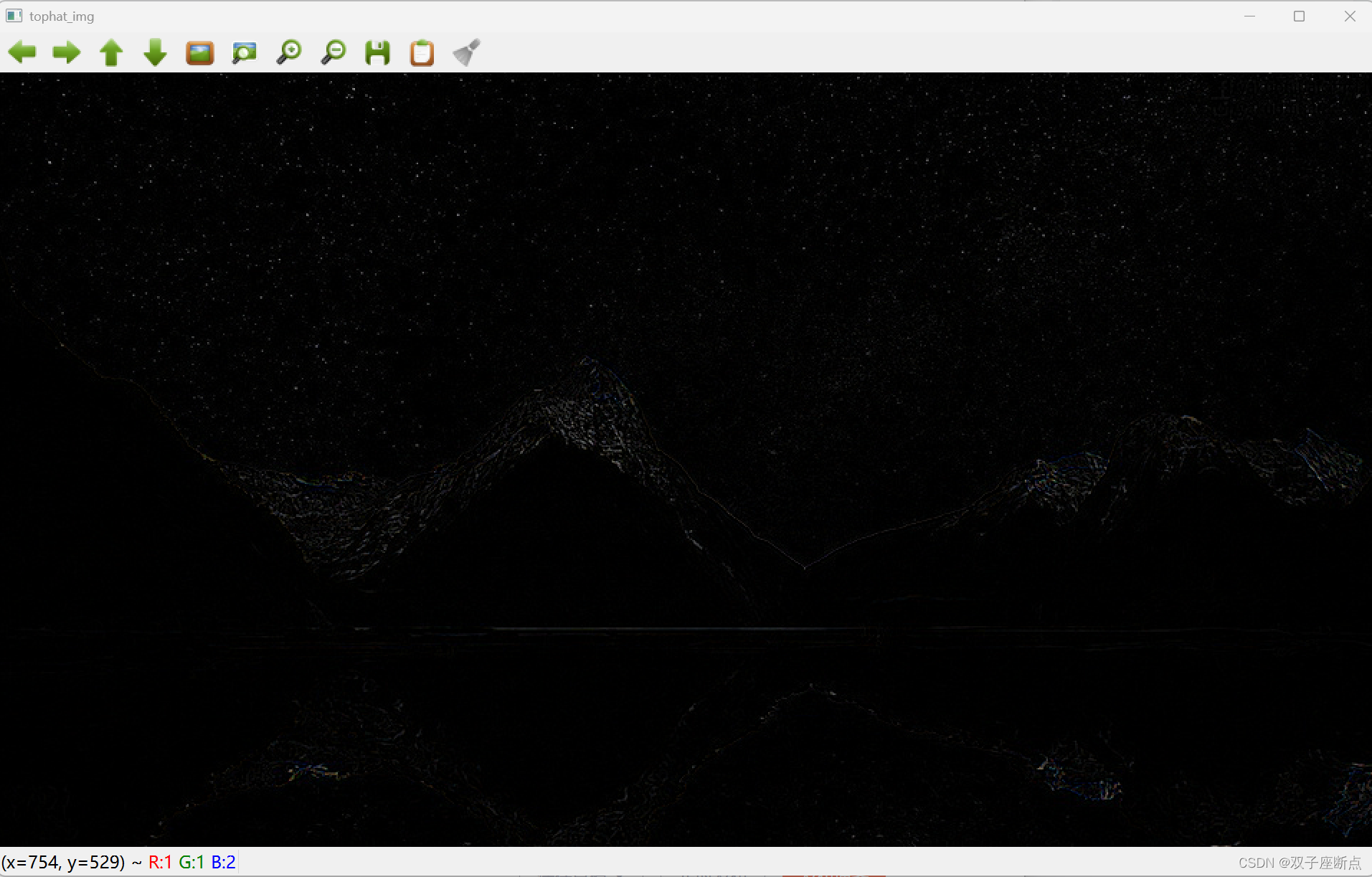 形态学Top-Hat变换是指形态学顶帽操作与黑帽操作,前者是计算源图像与开运算结果图之差,后者是计算闭运算结果与源图像之差。