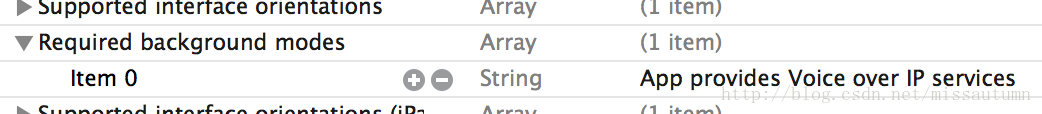 大多数VOIP应用需要设置后台audio 应用去传递音频,因此你应该设置audio 和voip两个键值。