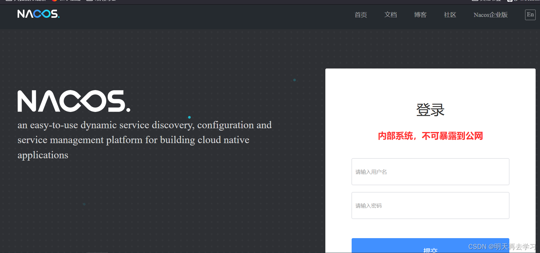 接着访问localhost:8848,可看到nacos的登陆界面: