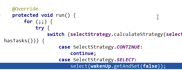 execute方法都是向队列中添加任务。当第一次添加时就启动线程,执行run方法,而run方法是整个EventLoop的核心,就像EventLoop的名字一样,LoopLoop,不停的Loop,Loop做什么呢?做3件事情。调用