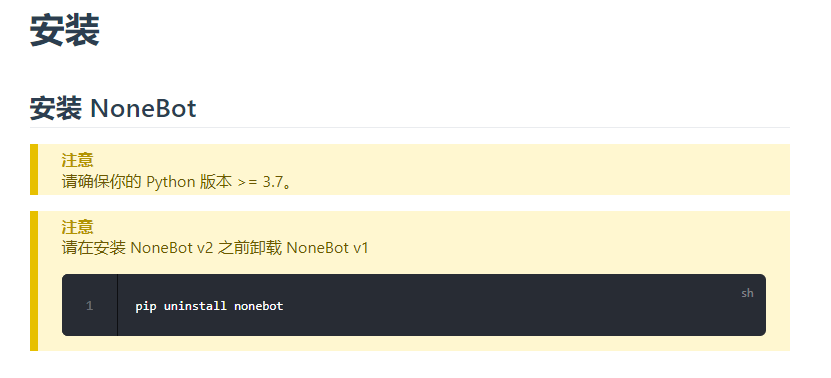 这里官方说了!要安装nonebot2的话就要卸载nonebot之前的版本!因为他们不兼容!而且python版本要等于或大等3.7如:3.8,3.9