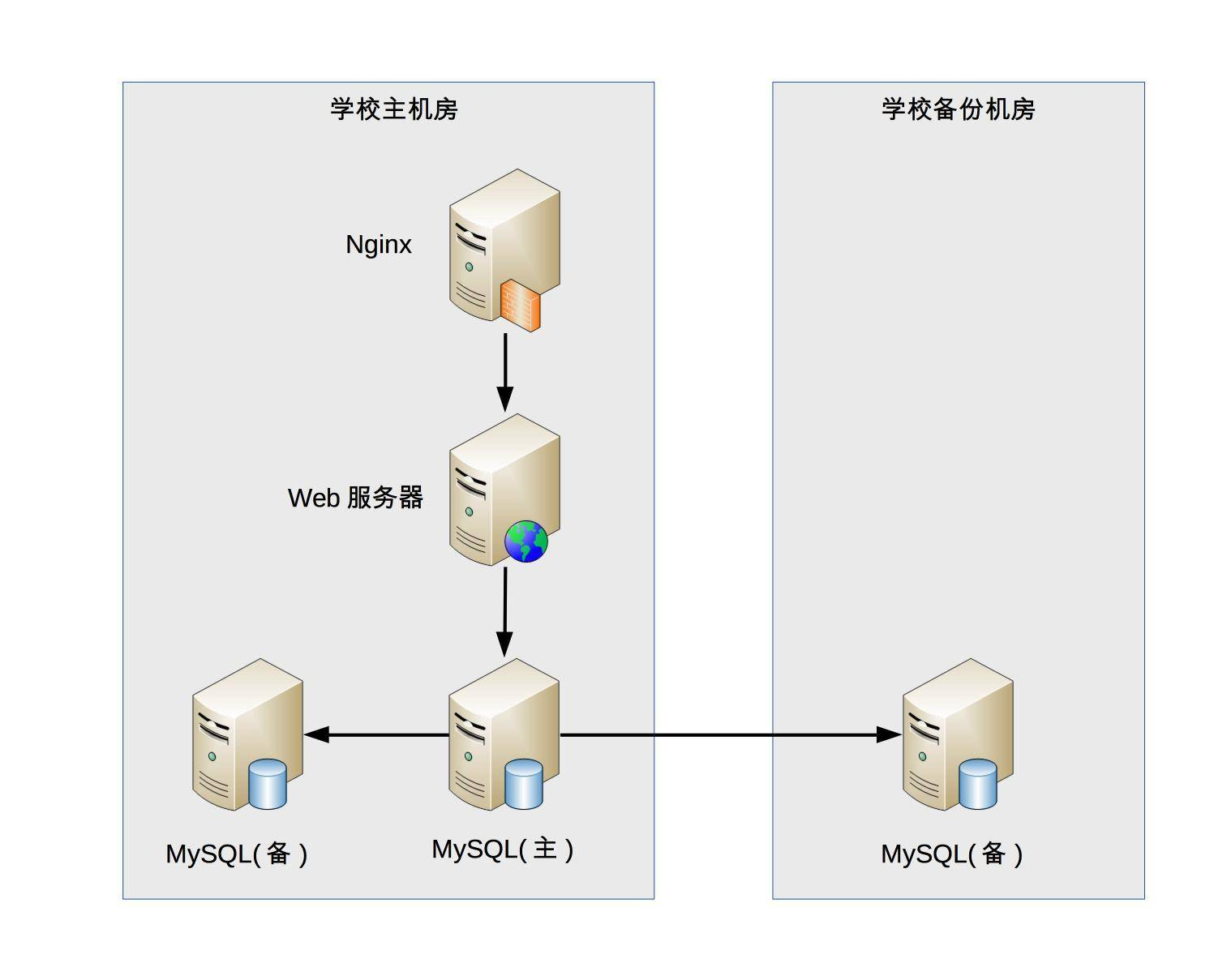 - 高可用:学生管理系统即使宕机 2 小时,对学生管理工作影响并不大,因此可以不做负载均衡,更不用考虑异地多活这类复杂的方案了。但是,如果学生的数据全部丢失,修复是非常麻烦的,只能靠人工逐条修复,这个很难接受,因此需要考虑存储高可靠,这里就有点复杂了。我们需要考虑多种异常情况:机器故障、机房故障,针对机器故障,我们需要设计 MySQL 同机房主备方案;针对机房故障,我们需要设计 MySQL 跨机房同步方案。