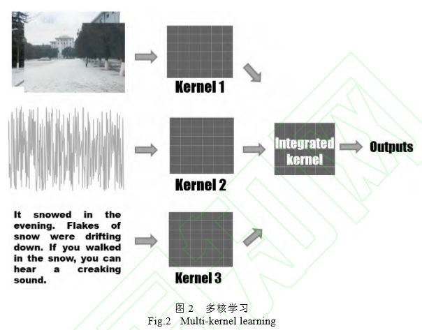 多核学习方法为不同模态的数据和属性选取不同的核函数,进而采用特定方法对不同核函数进行融合。目前,随着多核学习方法被深入研究并应用于不同的场景,不同形式的核函数及其改进形式被提出。如对于数值型数据的分类问题,高斯核具有较好的处理效果[36];字符串核对序列型问题的分类处理(如文本、音频、基因表达等)具有较大的优势[37];对于人脸识别问题和行人识别问题,则可以采用直方图交叉核[38]。