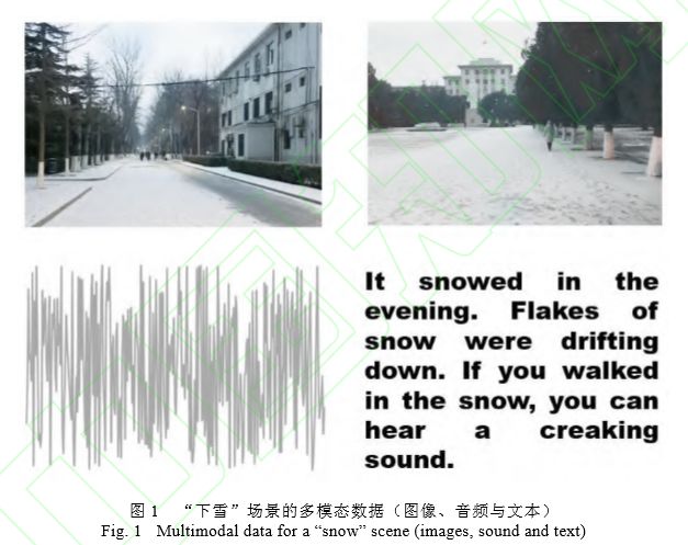 - 描述同一对象的多媒体数据。如互联网环境下描述某一特定对象的视频、图片、语音、文本 等信息。图 1 即为典型的多模态信息形式。