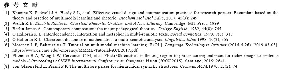 本文主要采用了新加坡国立大学 O'Halloran 对“模态”的定义,即相较于图像、语音、文本等多 媒体(Multi-media)数据划分形式,“模态”是一个更为细粒度的概念,同一媒介下可存在不同的模 态[4]。概括来说,“多模态”可能有以下三种形式。