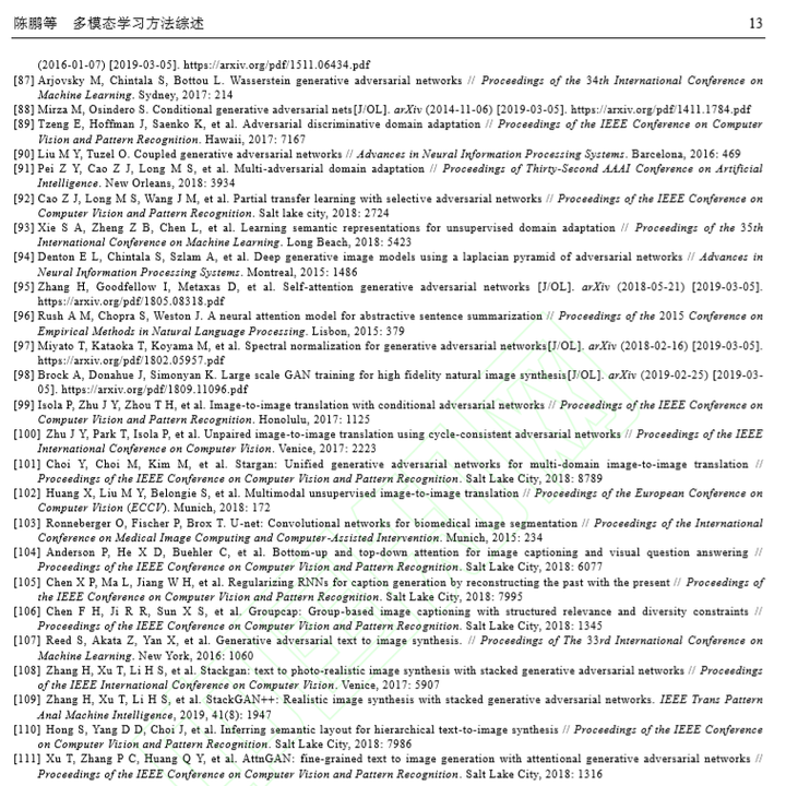 引用:陈鹏,李擎,张德政,杨宇航,蔡铮,陆子怡.多模态学习方法综述[J/OL].工程科学学报:1-13[2020-05-18].https://doi-org-443.wvpn.hrbeu.edu.cn/10.13374/j.issn2095-9389.2019.03.21.003.