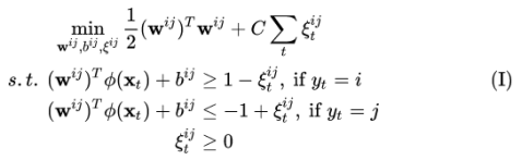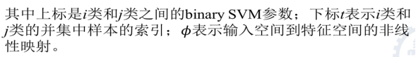 对第i类数据和第j类数据,训练一个binary SVM,即求解下列二次规划问题。